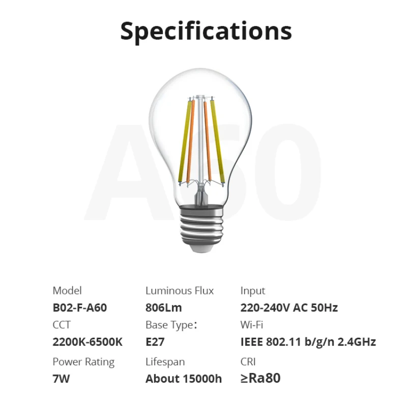 Спецификация SONOFF B02-F умный светодиодный лампы накаливания: