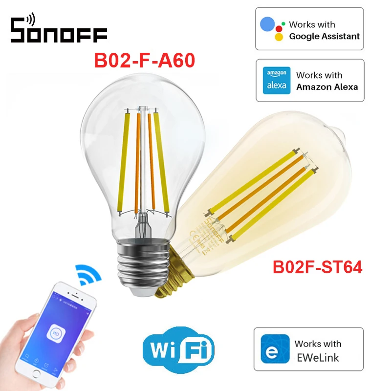 Умная Светодиодная лампа SONOFF B02-F A60 ST64 с Wi-Fi, E27, лампа с регулируемой яркостью, двухцветная лампа с голосовым управлением, работает с Alexa Google Home