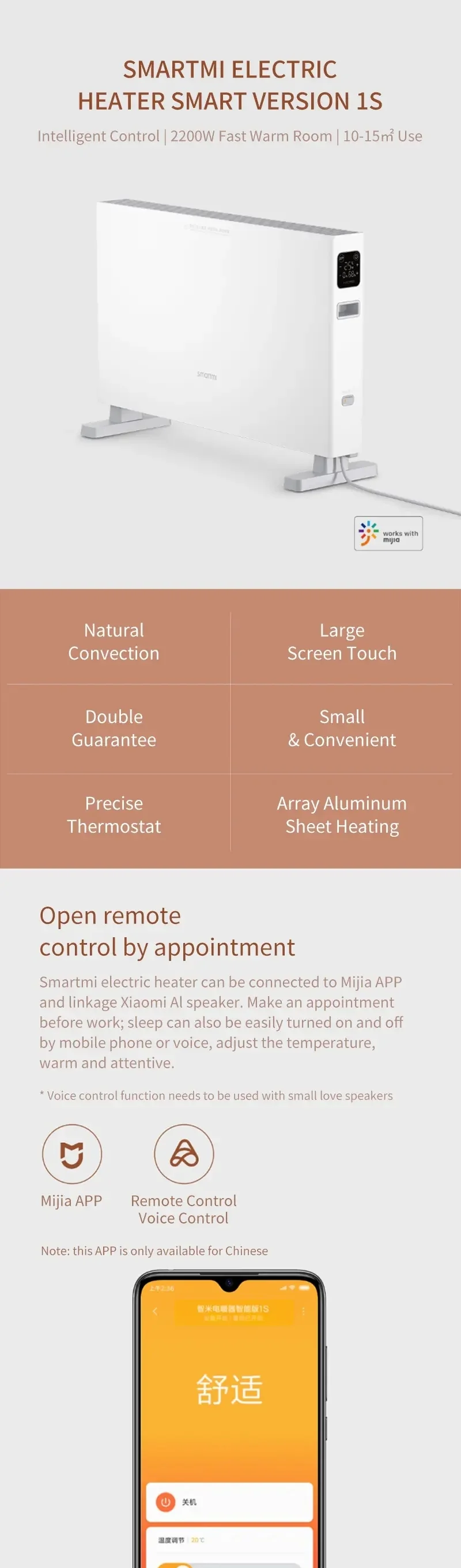 Электрический нагреватель Smartmi Smart Version 1S, 2200 Вт, высокая мощность, конвекция, большой экран, сенсорный IPX4, водонепроницаемый, работает с Mijia