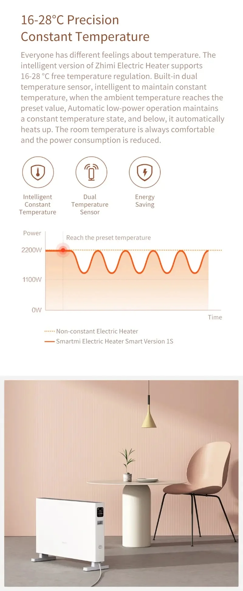 ● Интеллектуальная постоянная температура, двойной датчик температуры, энергосбережение.
