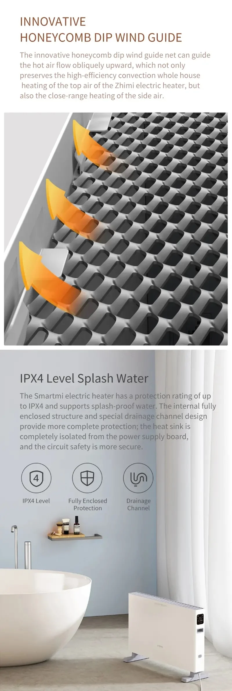 ● Водонепроницаемость IPX4, защита от брызг для ванной комнаты.