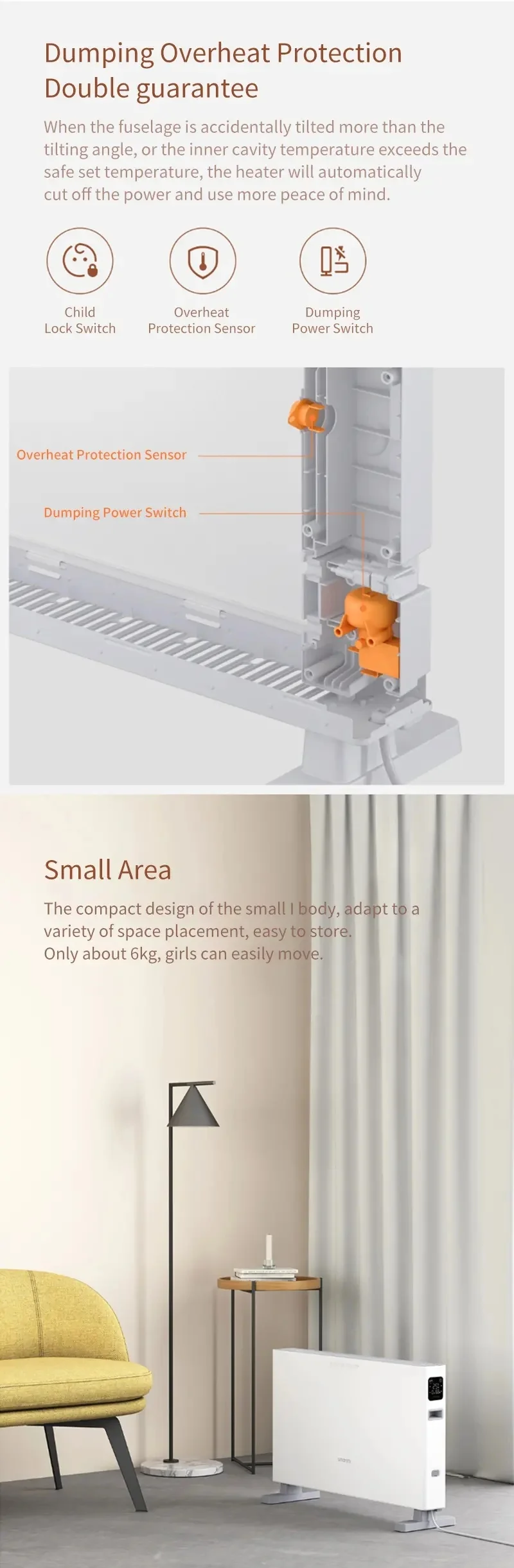 ● Естественное конвекционное отопление, тихий и не сухой.
