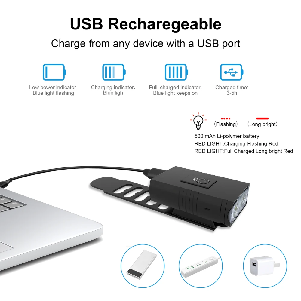 Светодиодный велосипесветильник фонарь T6, передняя лампа 800 лм, зарядка через USB, для горных велосипедов, шоссейных велосипедов, оборудование для велоспорта