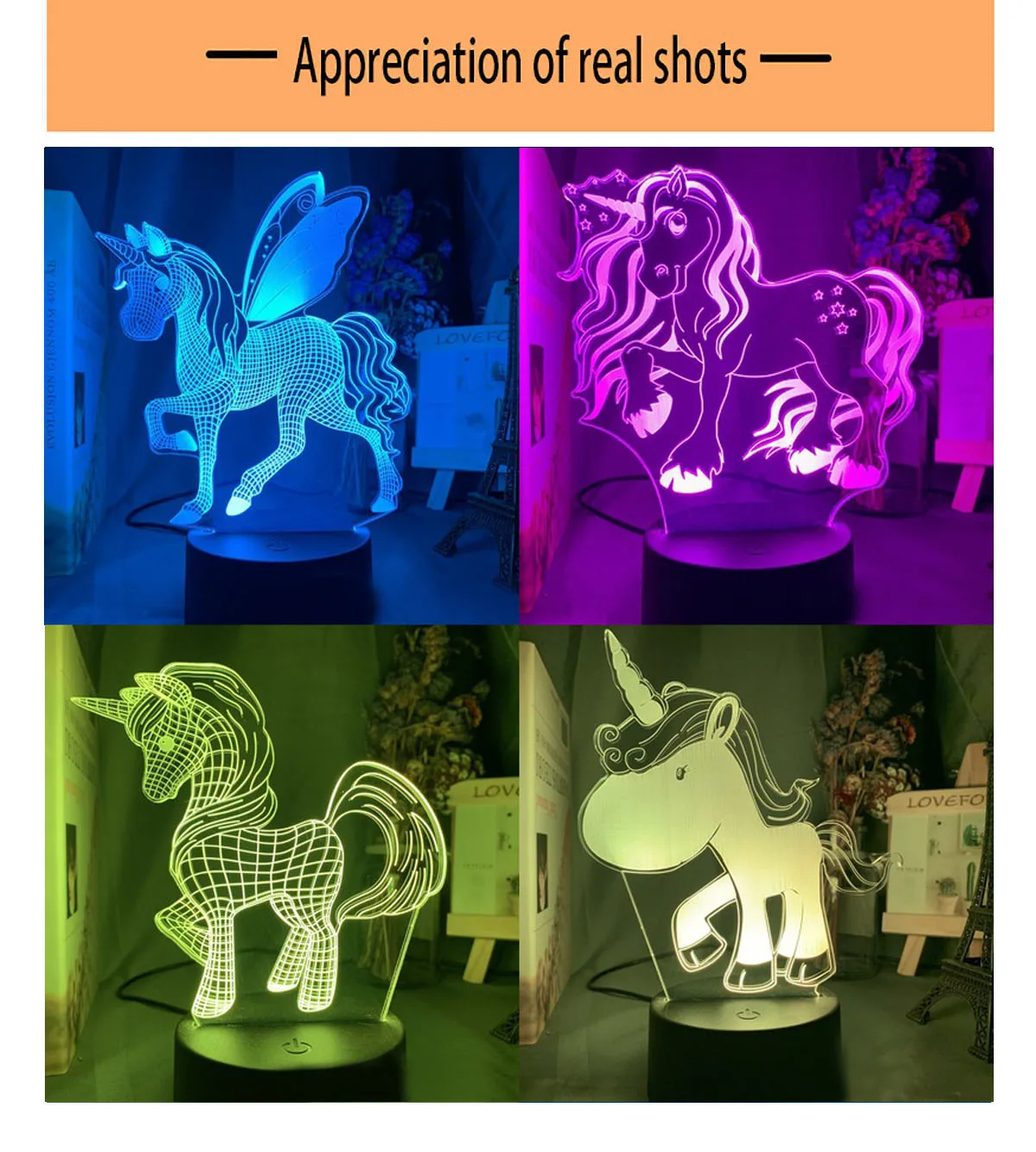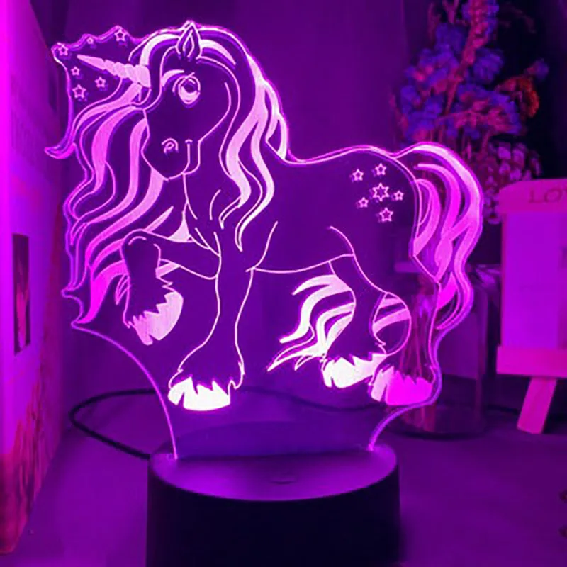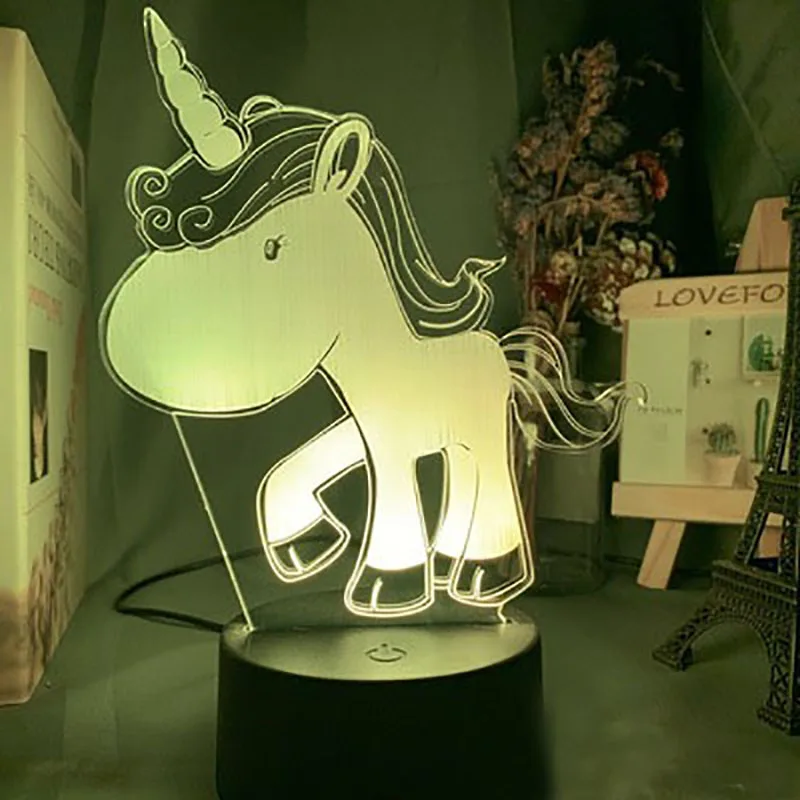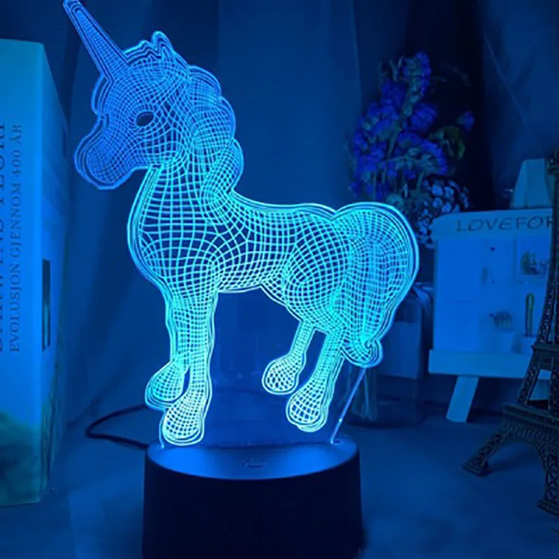 3D светодиодный ночник в виде единорога, меняющий цвет, USB-аккумулятор, носветильник ильник для украшения спальни, ночник в виде единорога, подарок