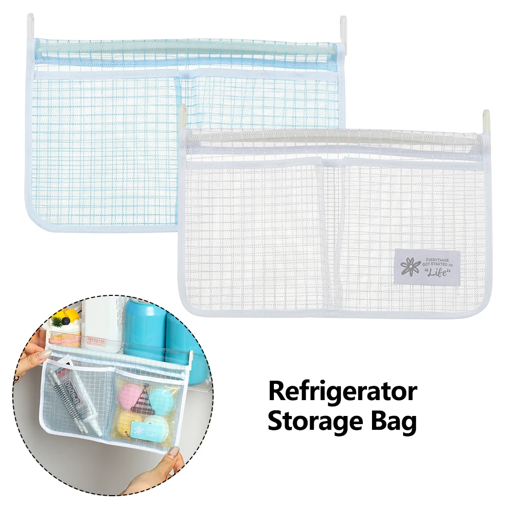 Висячая карманная аккуратная Боковая Сумка для хранения холодильника, органайзер для двери холодильника с крючками, Висячие сетчатые сумки