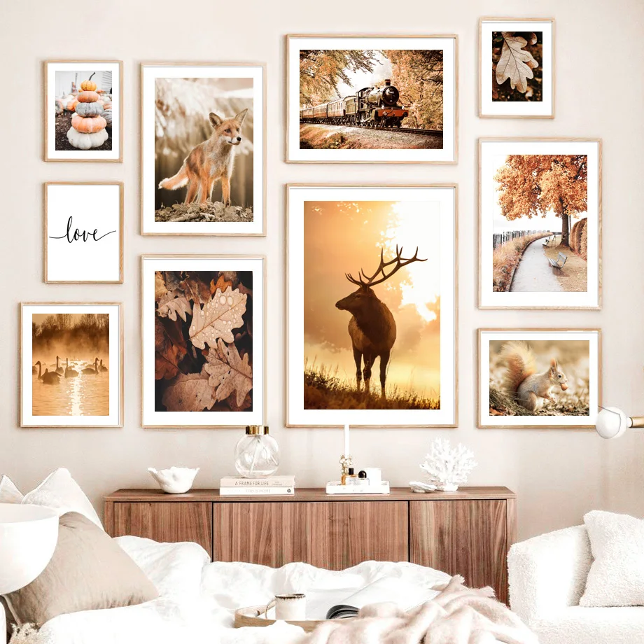 Настенная Картина на холсте с изображением лисы, тыквы, кленовых листьев