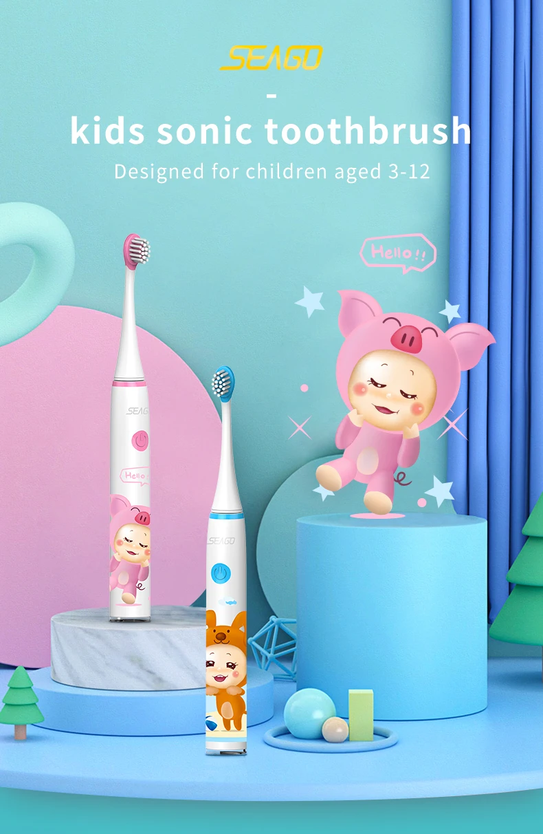 Seago SK3 детская звуковая электрическая зубная щетка, перезаряжаемая, мягкий очиститель языка, умный таймер, 3-12 лет