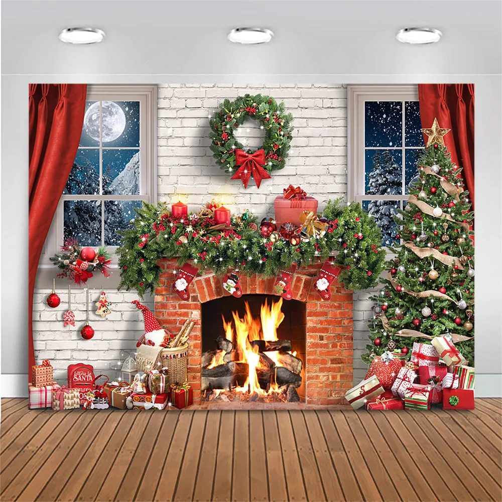 Mocsicka белая кирпичная стена Фотофон для камина Рождественский венок семейный портрет фото фон для фотосъемки