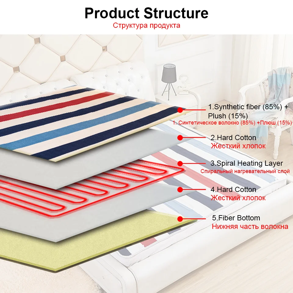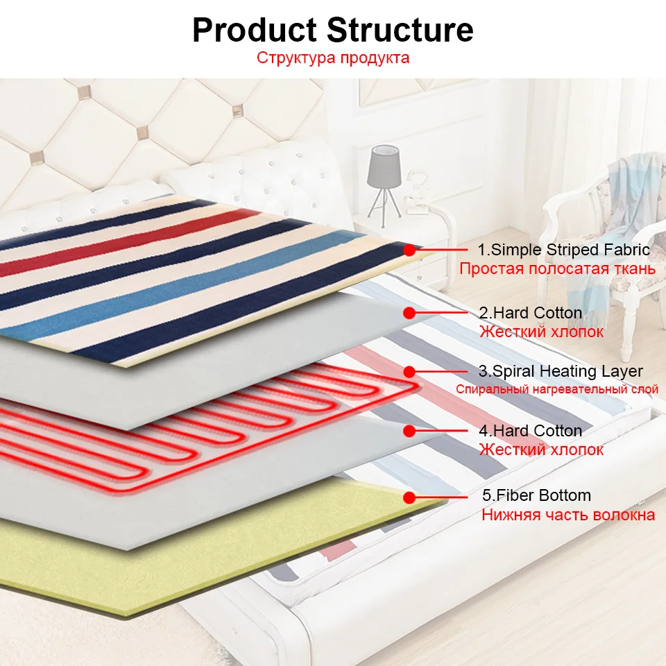 1. Двойной регулятор (150*180 см), есть 3 шестерни, высокая температура, низкая температура и переключатель, может контролировать температуру левой и правой сторон отдельно.2. Одиночный Контролер (70*150/120*150 см), есть 3 шестерни, высокая температура, низкая температура и переключатель, только может контролировать общую температуру.3. Защита от перегрева: во время использования продукта, пожалуйста, предварительно нагревайте продукт в течение 15-30 минут, пожалуйста, настройте на низкую температуру перед глубоким сном. Рекомендация: для безопасности детей, пожалуйста, не используйте его отдельно.