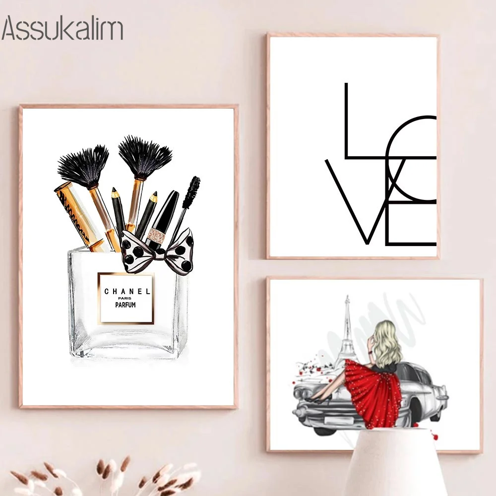 Модный настенный постер с флаконом духов, художественная живопись, ...