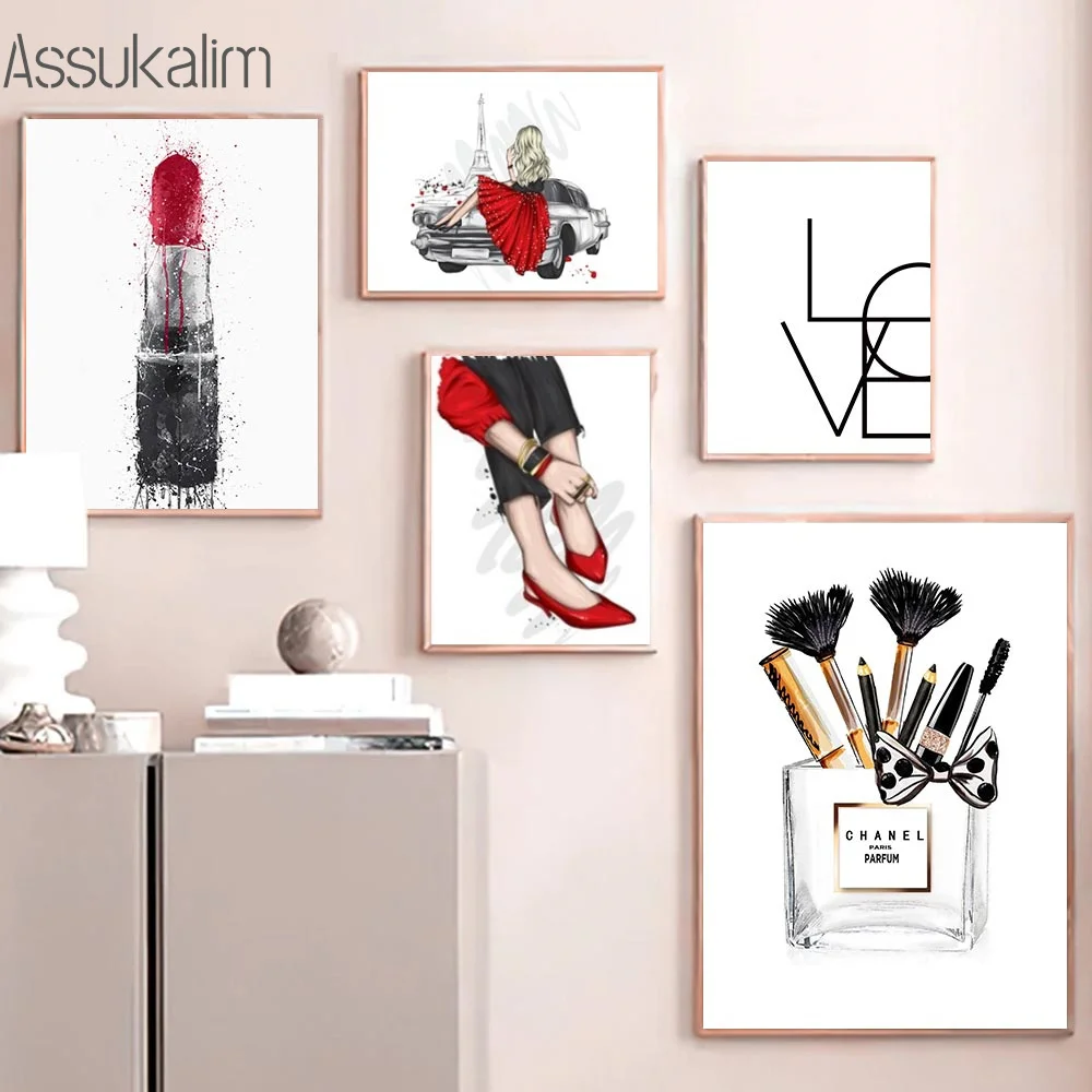 Модные плакат духи холст картины Mekeup постеры с ресницами, губами...