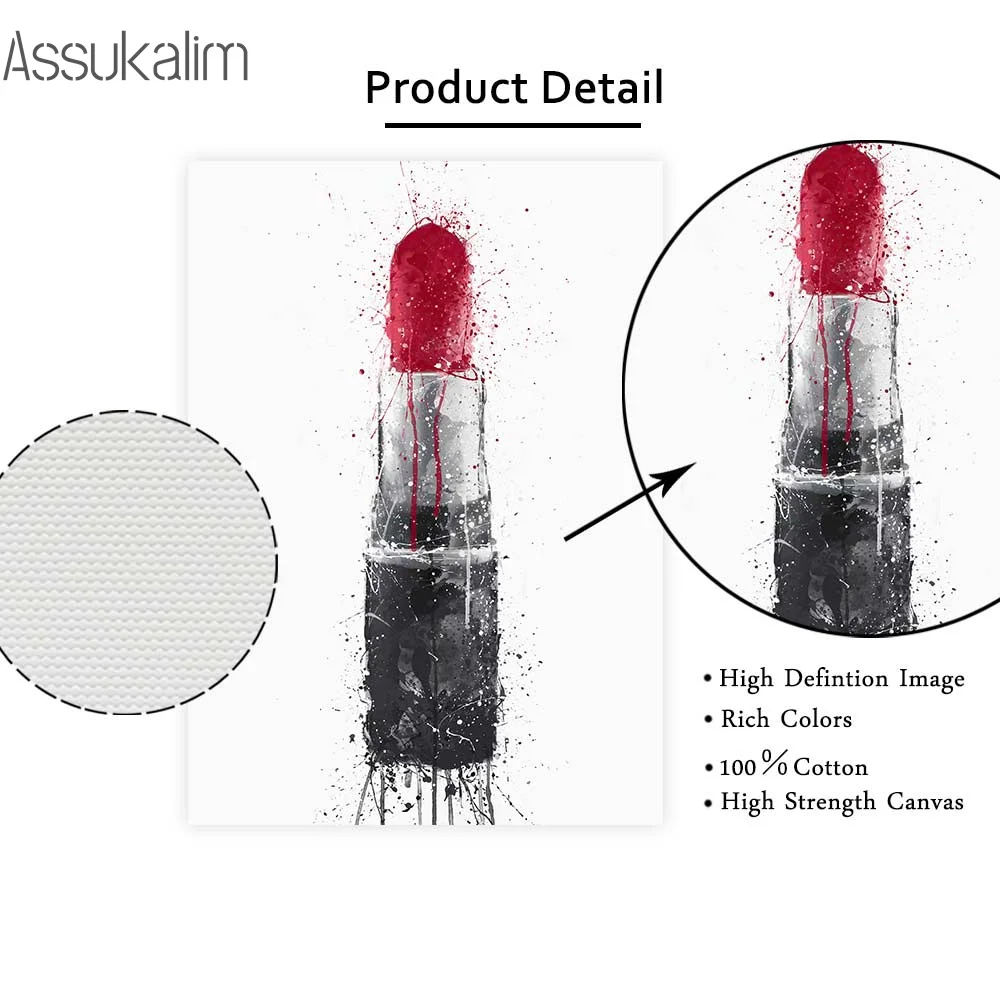 Модная Настенная картина на холсте, Кисть для макияжа, помада, цвет...