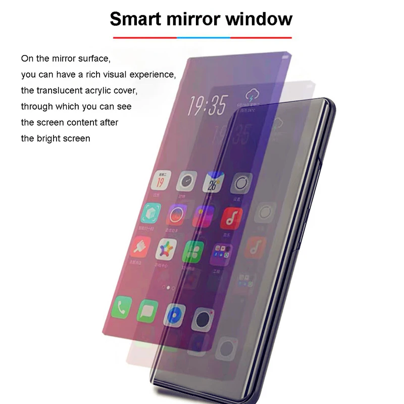 Особенности:1. Уникальный и умный дизайн сна/пробуждения, делает Автоматическое включение/выключение дисплея, открывая/закрывая флип, эффективно увеличивает срок службы батареи, добавляя больше удобства.2. Умный зеркальный флип-чехол, быстрый просмотр SMS, звонков, даты, времени и т. Д.3. Покрытие зеркальной поверхности, может использоваться как зеркало.4. Идеально сочетается с формой вашего телефона и делает его персонализированным и Поглощающим.5. Он может защитить ваш телефон от отпечатков пальцев, царапин, пыли, столкновений и истирания.6. Уникальный дизайн обеспечивает легкий доступ ко всем кнопкам, элементам управления и портам без необходимости снимать чехол.