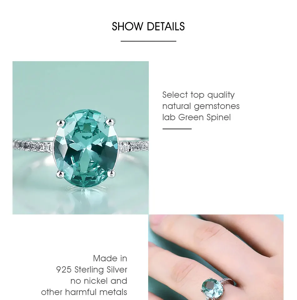 Красота драгоценного камня 3 карата овальная лаборатория зеленая шпинель обручальные кольца 925 пробы серебряные классические ювелирные изделия кольца для женщин романтический подарок
