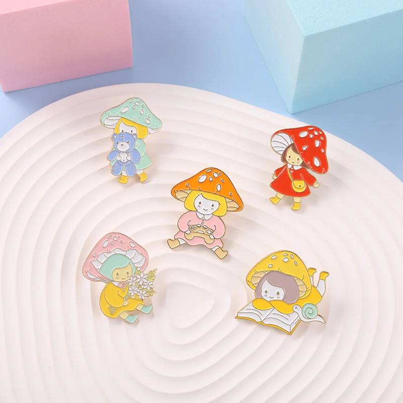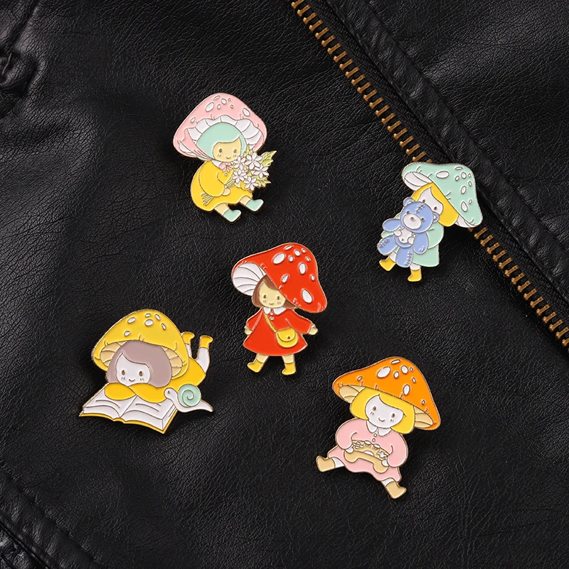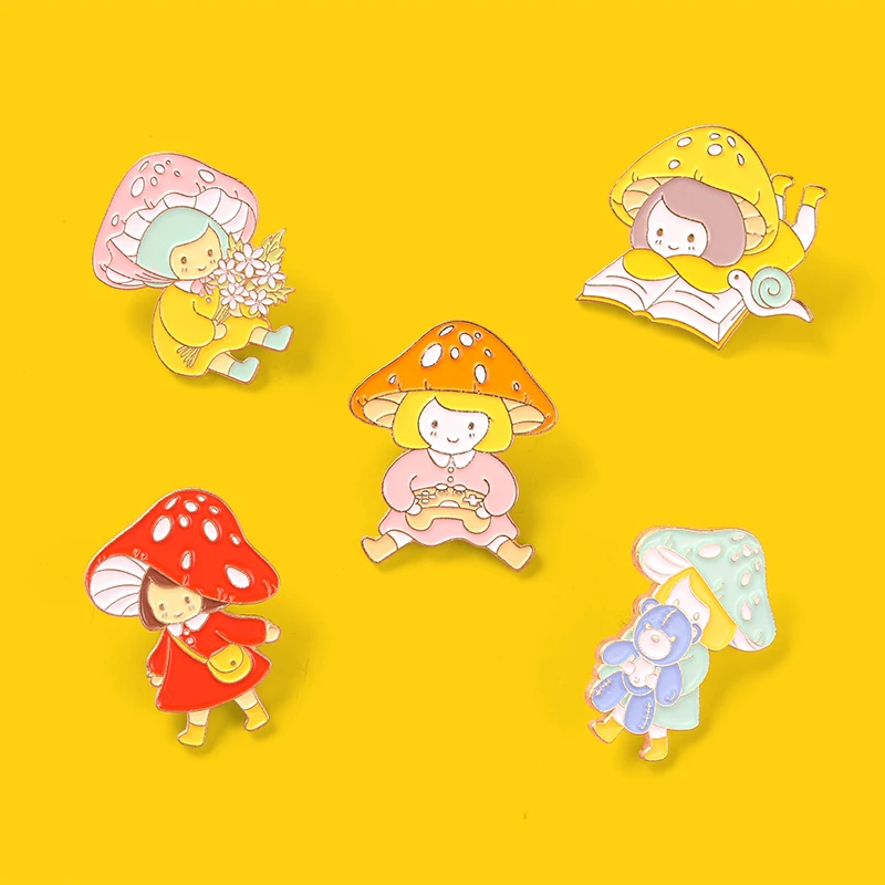 Эмалированные булавки в виде мультяшных грибов, милая маленькая девочка, красно-желтые пользовательские броши, аксессуары, рюкзак, подарок для детей, ювелирные изделия