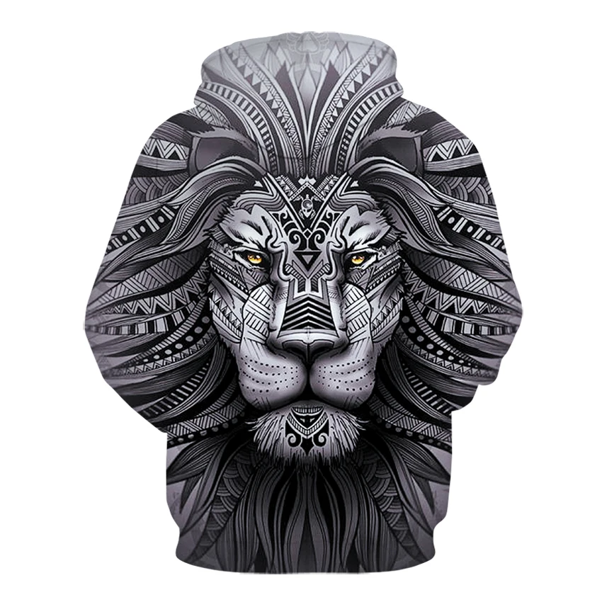 Модная мужская толстовка с капюшоном с 3D принтом головы льва для м...