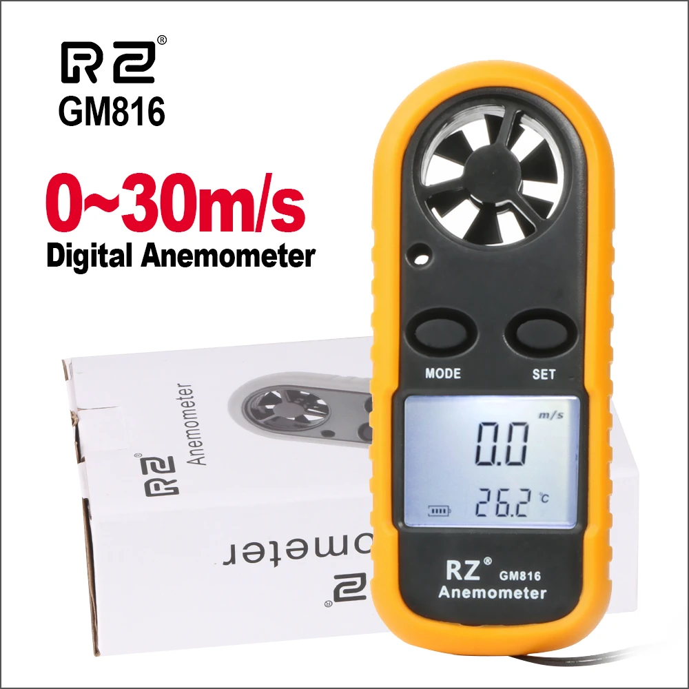 RZ переносной Анемометр, термометр, измеритель скорости ветра, Anemometro Windmeter 30 м/с, ЖК-цифровой Ручной измерительный инструмент GM816