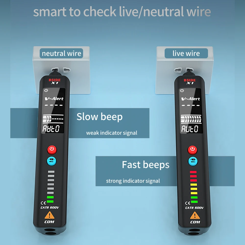 Тип X1BSIDE X1 тестовый карандаш имеет двойной режим обнаружения, т. Е. Высокая/низкая чувствительность NCV обнаружения. Это также мультиметр, который может измерять напряжение переменного/постоянного тока, сопротивление, частоту, определить нейтральный/живой провод и провести непрерывный тест. Карманный размер с большим ЖК-экраном, он прост, удобен и безопасен в использовании.Особенности:Высокая/низкая чувствительность NCV режим обнаружения обеспечивает безопасное измерение и отвечает требованиям различных приложений.Многофункциональный измеритель, который может отличить нейтральный провод от живого провода, непрерывность тестовых замыканий, найти точку разрыва в живом проводе и измерить напряжение, сопротивление, частоту переменного/постоянного тока.Обеспечивает звуковой сигнал и светильник одновременно при обнаружении напряжения и соответствует стандарту CAT 600 600V для обеспечения максимальной безопасности.Встроенный светодиодный фонарик позволяет удобно использовать в ночное время или в темном уголке.Оснащен ультрапрозрачным ЖК-дисплеем EBTN, четким и удобным для чтения.Компактный и портативный дизайн позволяет легко использовать, удобный инструмент для электрика, а также отлично подходит для непрофессиональных, чтобы использовать дома.Характеристики:Материал: АБС-пластикБренд: BSIDEМодель: X1Максимальный дисплей: 2000 шт.Измеритель Толщина: 1,5 см.Макс. Напряжение постоянного тока: 600 В 0,01 В ±(0.8% + 3)Макс. AC Напряжение: 600V 0,01 V ±(1.2% + 5)Сопротивление: 10 МОм 1 Ом ±(1.2% + 3)Частота: 40 Гц ~ 1000 Гц 1 Гц ±(2.0% + 3)Режим обнаружения NCV: 90V ~ 1000V ACВысокочувствительный режим обнаружения NCV: 6V ~ 1000V ACИдентификация в режиме реального времени/нейтральная Идентификация: звуковой сигнал тревоги, полоса ЖК-дисплеяТест на непрерывность: если сопротивление менее 30 Ом, звуковой сигналБатарея тест: 1,5 V/6 в/9 В/12 ВАвтоматическое выключение: 5 минутИсточник питания: 2 батарейки ААА (не входит в комплект)Размер изделия: 160*30*25 мм/6,29*1,18 * 0.98inВес изделия: 69 г/2,43 унцийВес посылка: 215 г/7,58 унцийРазмер посылка: 17,6*8,2*4,2 см/6,92*3,22*1,65 дюймовУпаковочный лист:1 * X1 детектор напряжения1 * Портативная сумка для хранения1 * Тестовые провода1 * Руководство пользователя (на английском языке)Тип X2Этот многофункциональный инструмент имеет функцию мультиметра, инфракрасного температурного метра, электрического тестового пера и фонарика. С цветным ЖК-экраном для удобного чтения и удобными кнопками для легкой работы, он может широко использоваться в электрических испытаниях, ремонте автомобилей, измерении промышленной температуры и т. д.Особенности:4 в 1 Многофункциональный измеритель: мультиметр, инфракрасный температурный измеритель, электрическая тестовая ручка и фонарик. Широко используется для электрических испытаний, ремонта автомобилей, измерения промышленной температуры и т. д.Сменная измерительная ручка предназначена для мультиметра. Высокая точность, измерение одной кнопкой, автоматическое распознавание. Он может тестировать напряжение переменного тока, напряжение постоянного тока, непрерывность, сопротивление и частоту.-20 ~ 380 ℃ (-4 ~ 716 ℉) Широкий диапазон измерений для промышленного измерения температуры, быстрого отклика и точных данных. Не подходит для взрослых, детей или животных.С изоляционной конструкцией этот инструмент может безопасно тестировать живую линию и