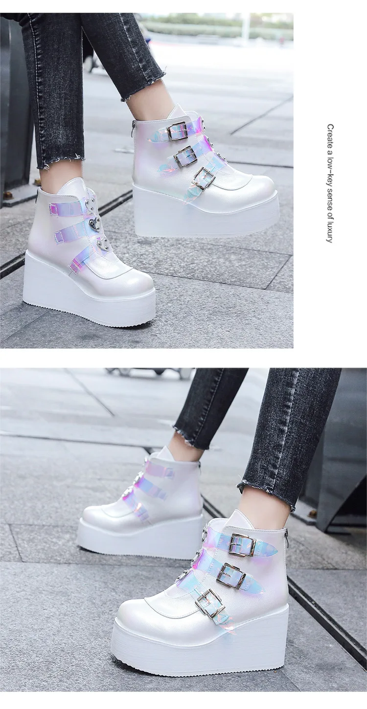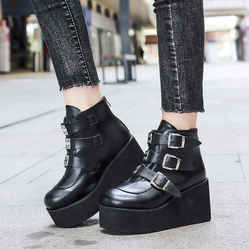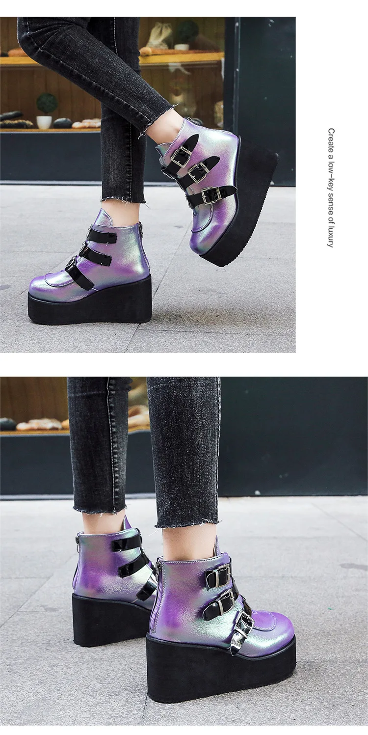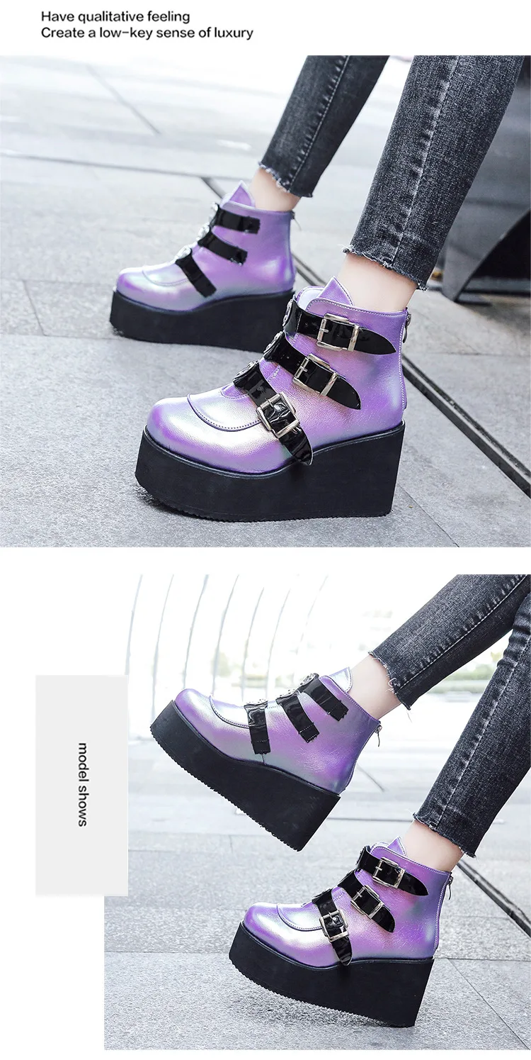 Женские ботинки 2021, новые модные весенние ботильоны на платформе, фиолетовые увеличивающие рост женские черные ботинки, размер 43 Botas De Mujer