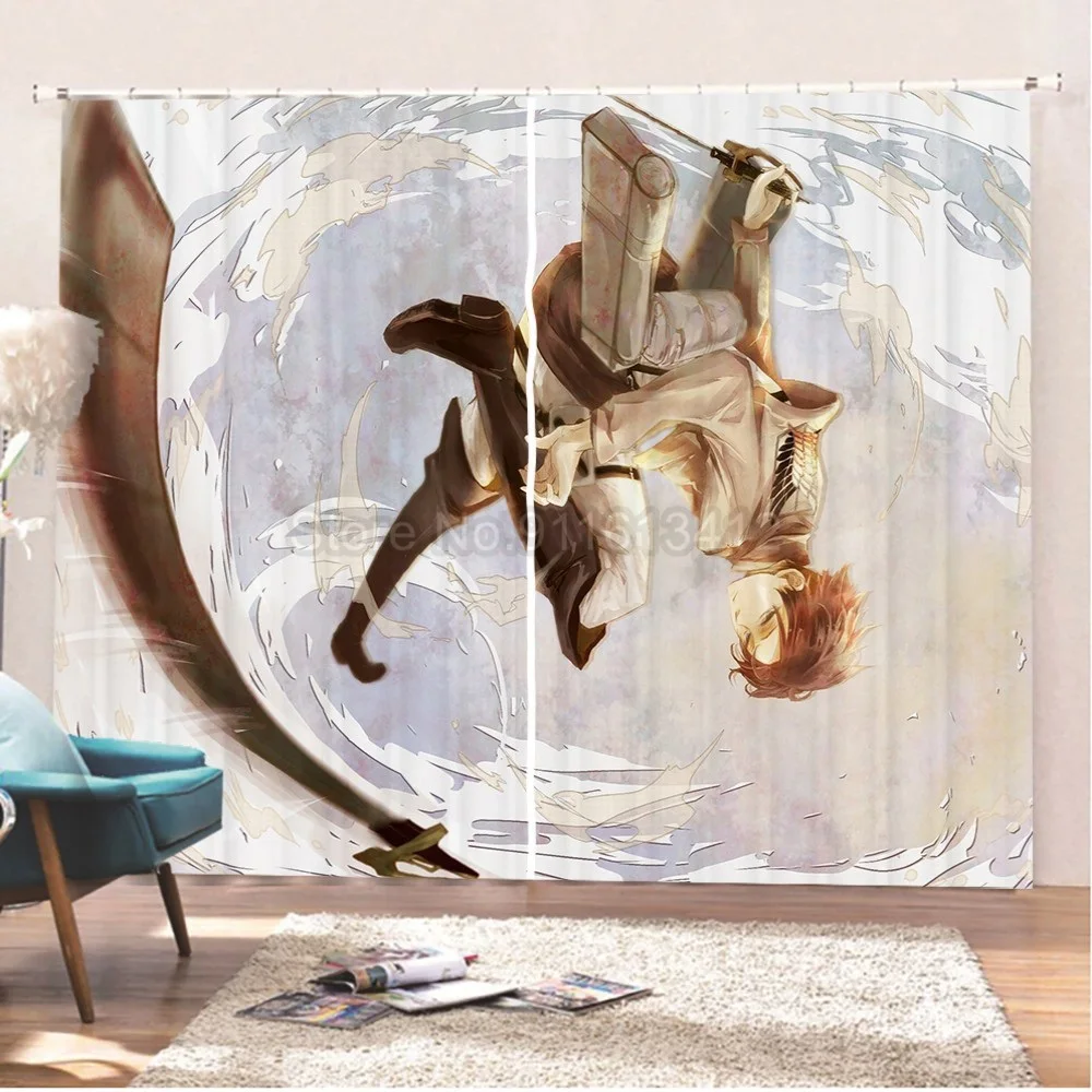 Затемненные шторы атака на Титанов, 2 панели, аниме, мультипликационные шторы, 3D принт, оконные шторы для финального сезона, домашние оконные шторы