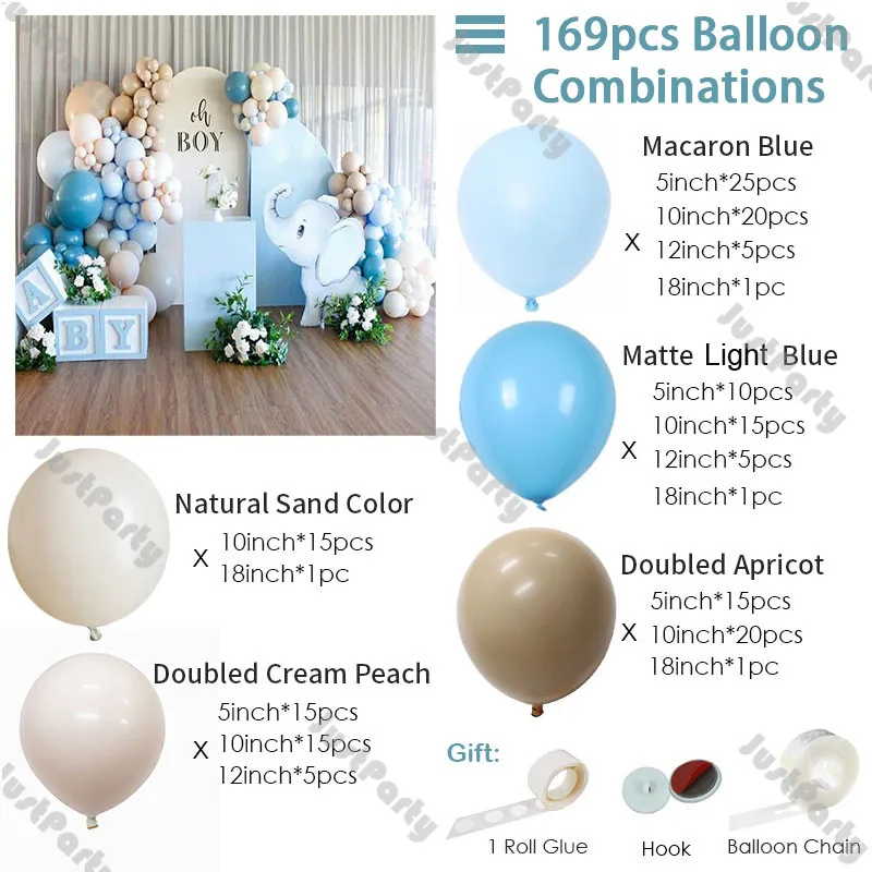 169 шт. матовая синяя гирлянда для воздушных шаров, украшение на день рождения мальчика, двойной крем, персик, абрикос, натуральный песок, воздушный шар, арочный шар, декор для будущей мамы