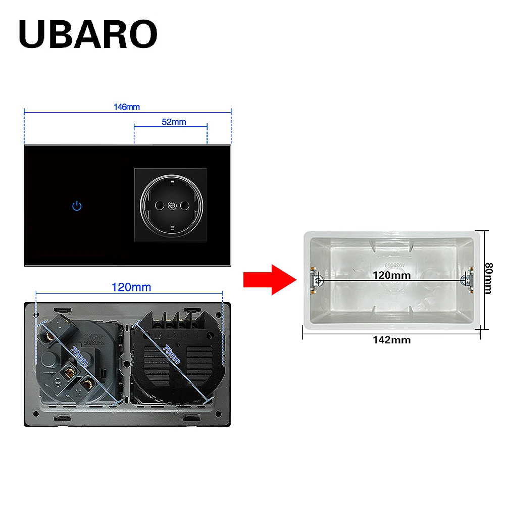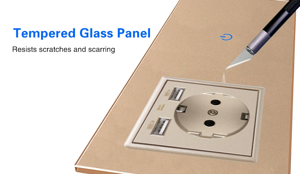 UBARO ЕС Великобритания стандарт закаленное стекло сенсорная кнопка настенная панель сенсорный выключатель с USB розеткой электрическая розетка