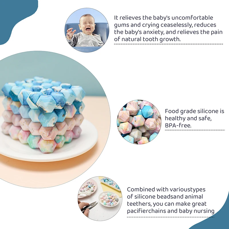 17 мм 5 шт Силиконовые Бусины шестигранные Бусины Пищевой Силикон Прорезыватель DIY соски бусы-клипсы ожерелье Детские Прорезыватели аксессуары