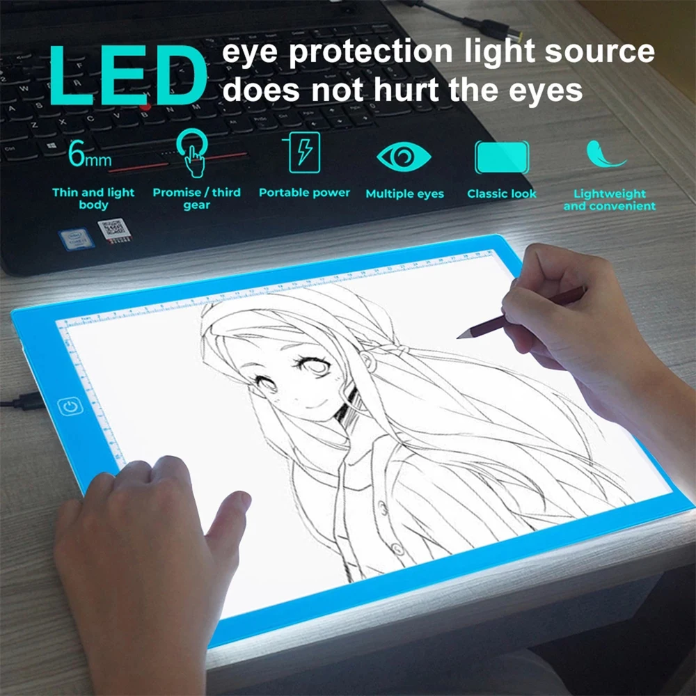 Цифровой графический планшет A4, планшет для рисования со светодиодной подсветкой и шкалой, трехуровневый, с затемнением