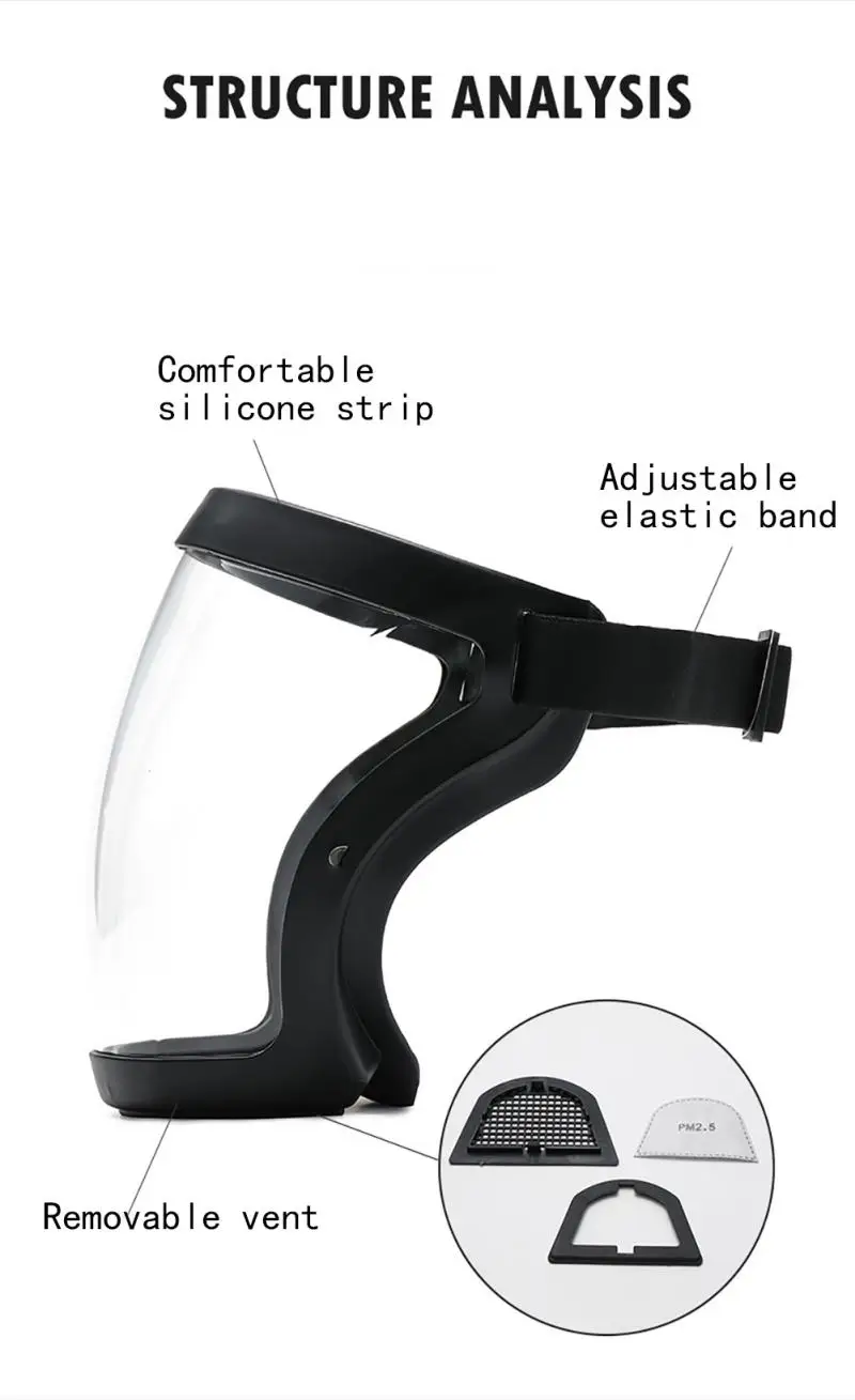 【Прозрачный дизайн 】-чехол для лица имеет большую защитную прозрачную прокладку, поэтому он может надежно защитить все лицо. Кроме того, видимость высокая и есть пространство между лицом и защитным чехлом.