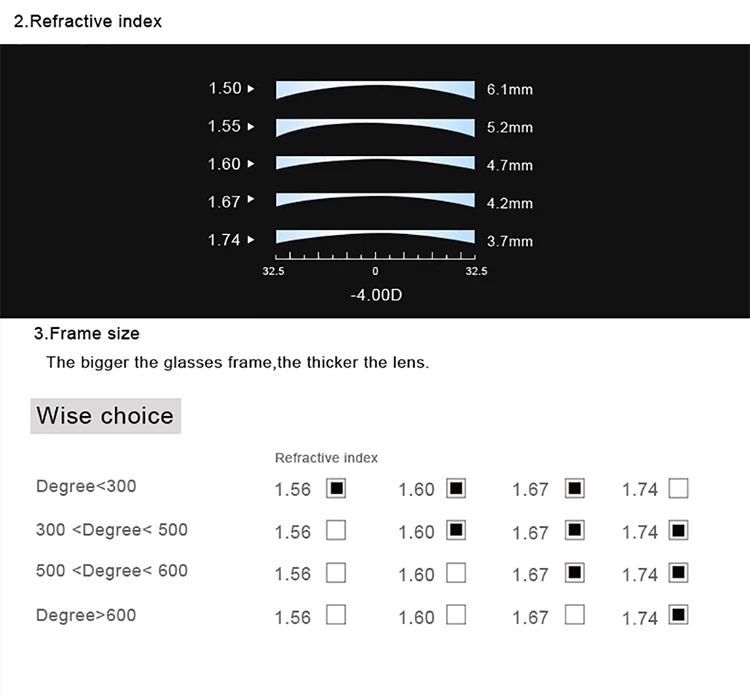 Hyperopia Reading Glasses Choose1.56 Hyperopia 0.5 to 3.0