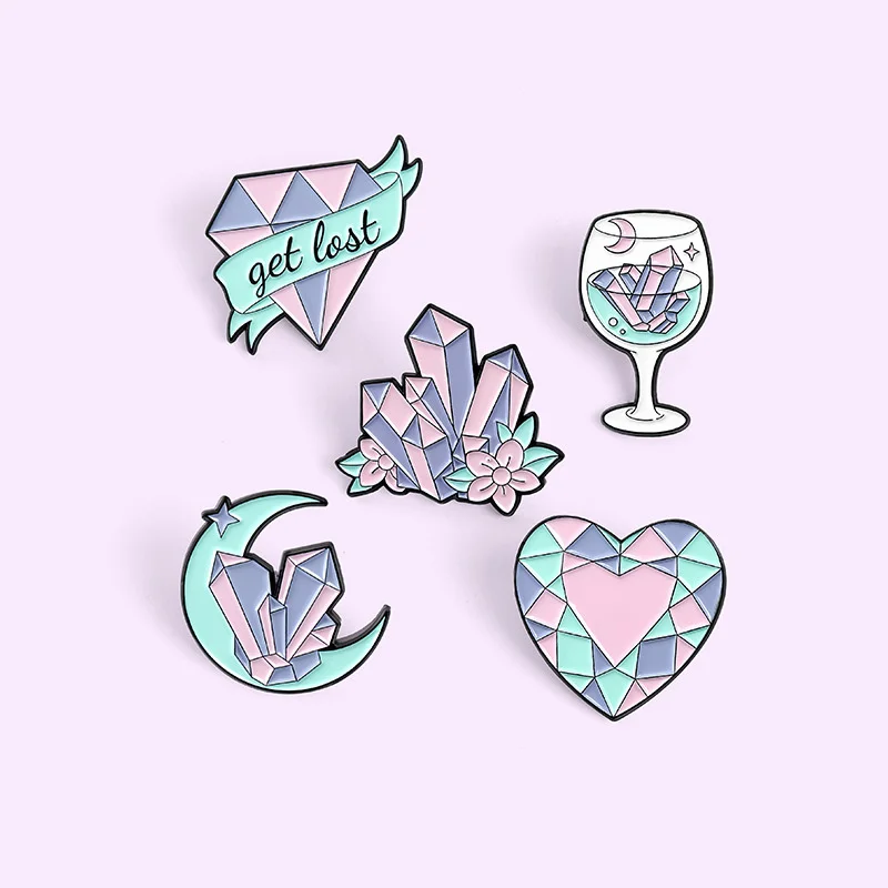 Розовые кристаллы в форме Эмали, булавки, луна, сердце, броши бокал...