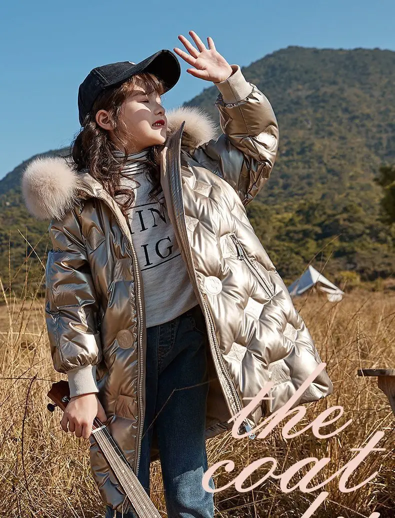 Детская зимняя пуховая куртка из хлопка, новая модная одежда для девочек, детская одежда, плотная парка, пальто из искусственного меха, зимний комбинезон с капюшоном, верхняя одежда