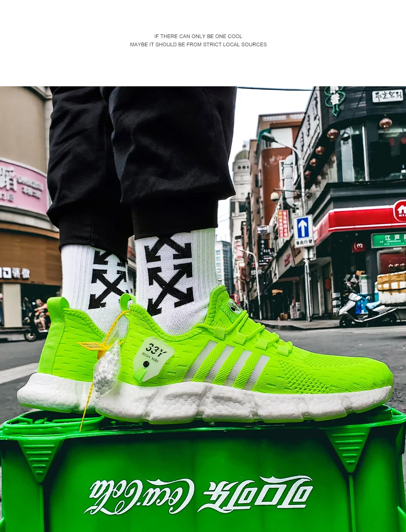 Кроссовки мужские легкие сетчатые, дышащие удобные повседневные беговые кроссовки, флуоресцентный зеленый цвет, большие размеры, белые, на лето