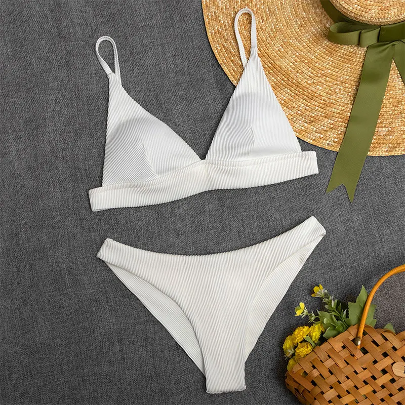 2022 новый сексуальный комплект бикини, однотонный белый купальник, женский купальник, Бразильский бикини, купальный костюм, женская пляжная одежда, бикини из двух предметов