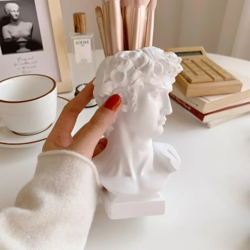 1. Креативность: Креативный держатель кистей для макияжа. Классические греческие чашечки для макияжа для кистей Michelangelo David Bust Statue. Вы можете положить ваши любимые румяна и помаду на этот красивый. Он является восхитительным украшением для вашего тщеславия.