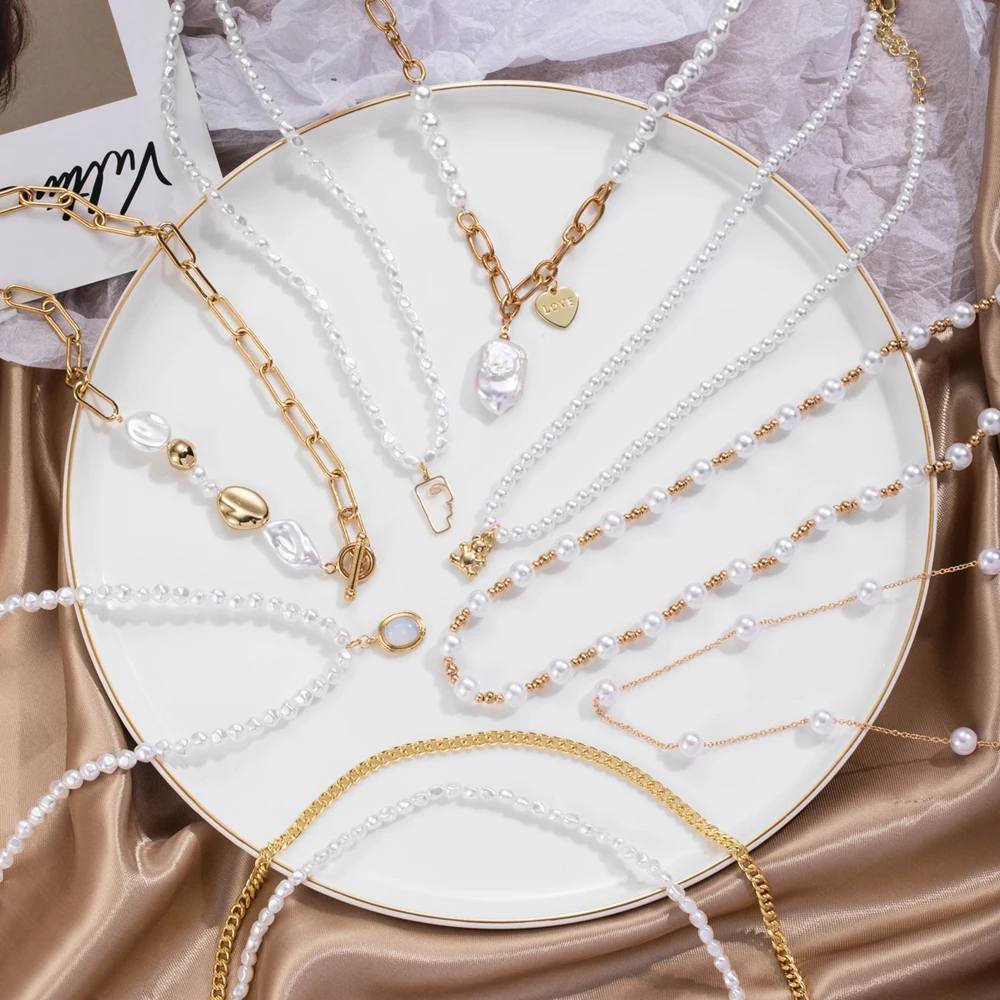 новое модное жемчужное ожерелье для женщин, белое имитационное нере...