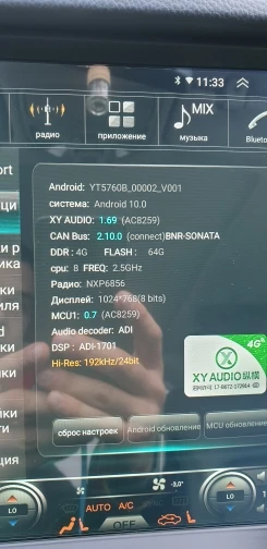 магнитола сделана качественно, продавец отвечает на вопросы по подключению и настройке, из проблем: штатная камера работает через раз (обещали починить прошивкой), иногда при запуске магнитолы, звук тихий (после запуска приложения управляющего усилителем, звук востанавливается, ждём прошивку), были перепутаны тюльпаны на звук (левый/правый вывод на колонки), из-за какой-то настройки, навигатор не приглушает другие звуки (хотя при первом запуске вроде работало нормально), не отображается на магнитоле обогрев заднего стекла и сидений (хотя иконки есть), управлять с магнитолы этими функциями нельзя. под нижний край магнитолы надо что-то подложить, т.к. она получается на 1мм утоплена относительно панели автомобиля. штатный микрофон не подключить, нет пинов в колодке, заказал самую лучшую модификацию, пришла с android 10, симка работает хорошо, встроенный микрофон и петличка работают тихо. парктроники не отображаются, версия процессора неизвестна. звук хороший. ждём новую прошивку
