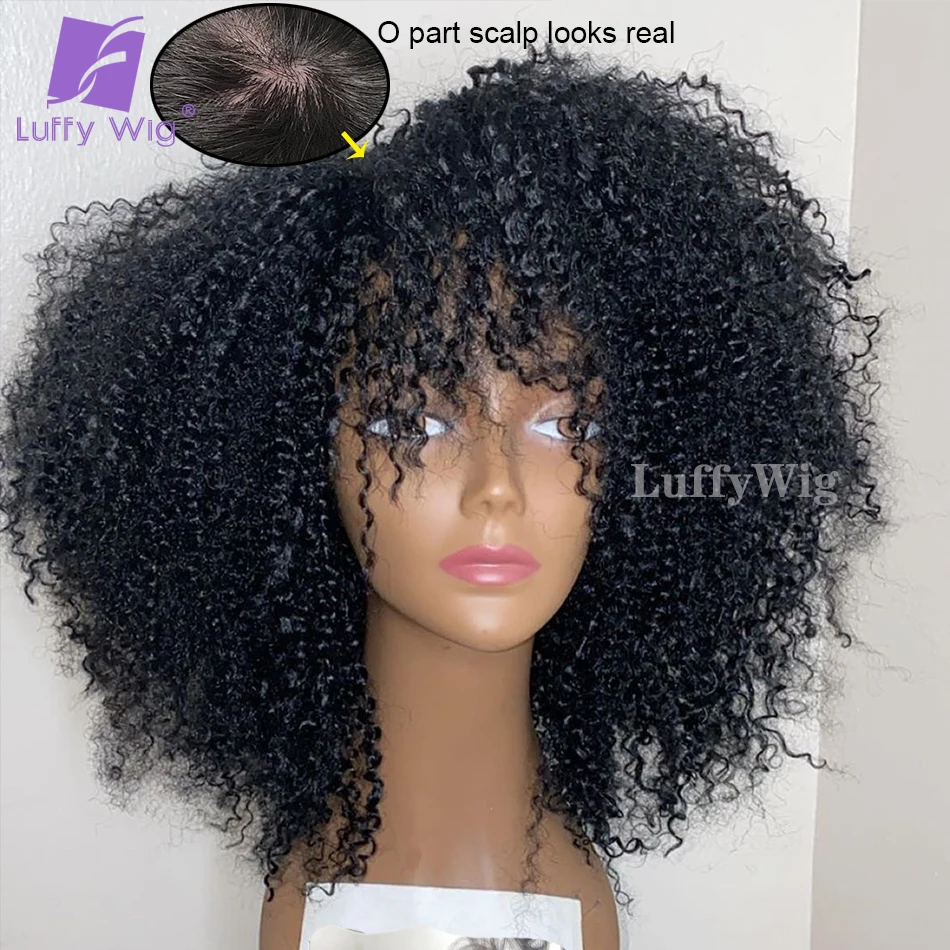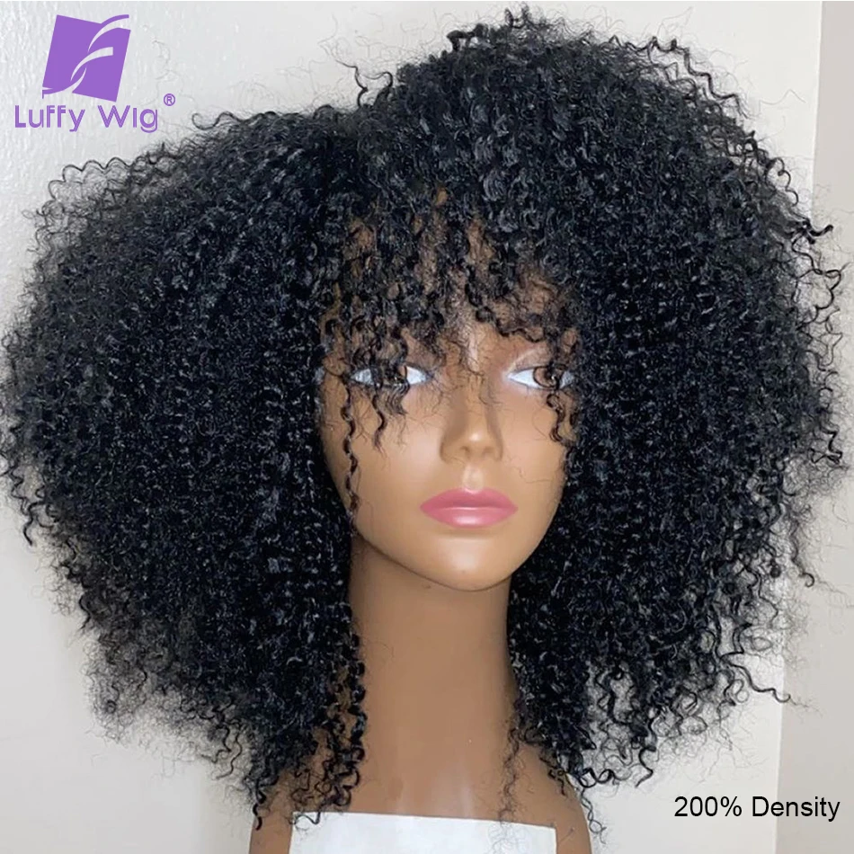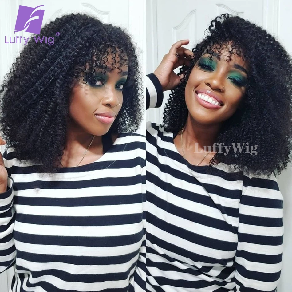 Короткие афро кудрявые вьющиеся парики с челкой 200 плотность бразильские волосы Remy машинная работа парик без клея для черных женщин Luffy парик