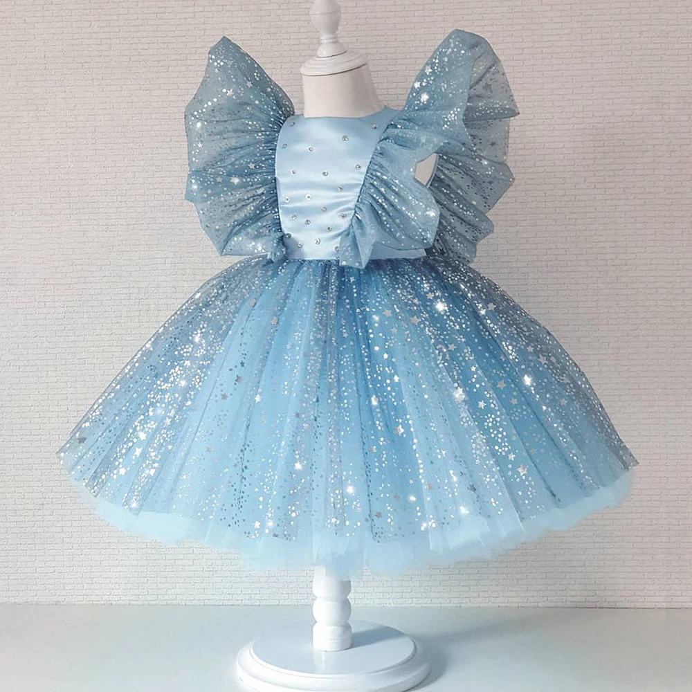 Платья для младенцев, официальное вечернее платье для девочек, свадебное платье с бантом и блестками, Роскошная вечерняя одежда, элегантная одежда