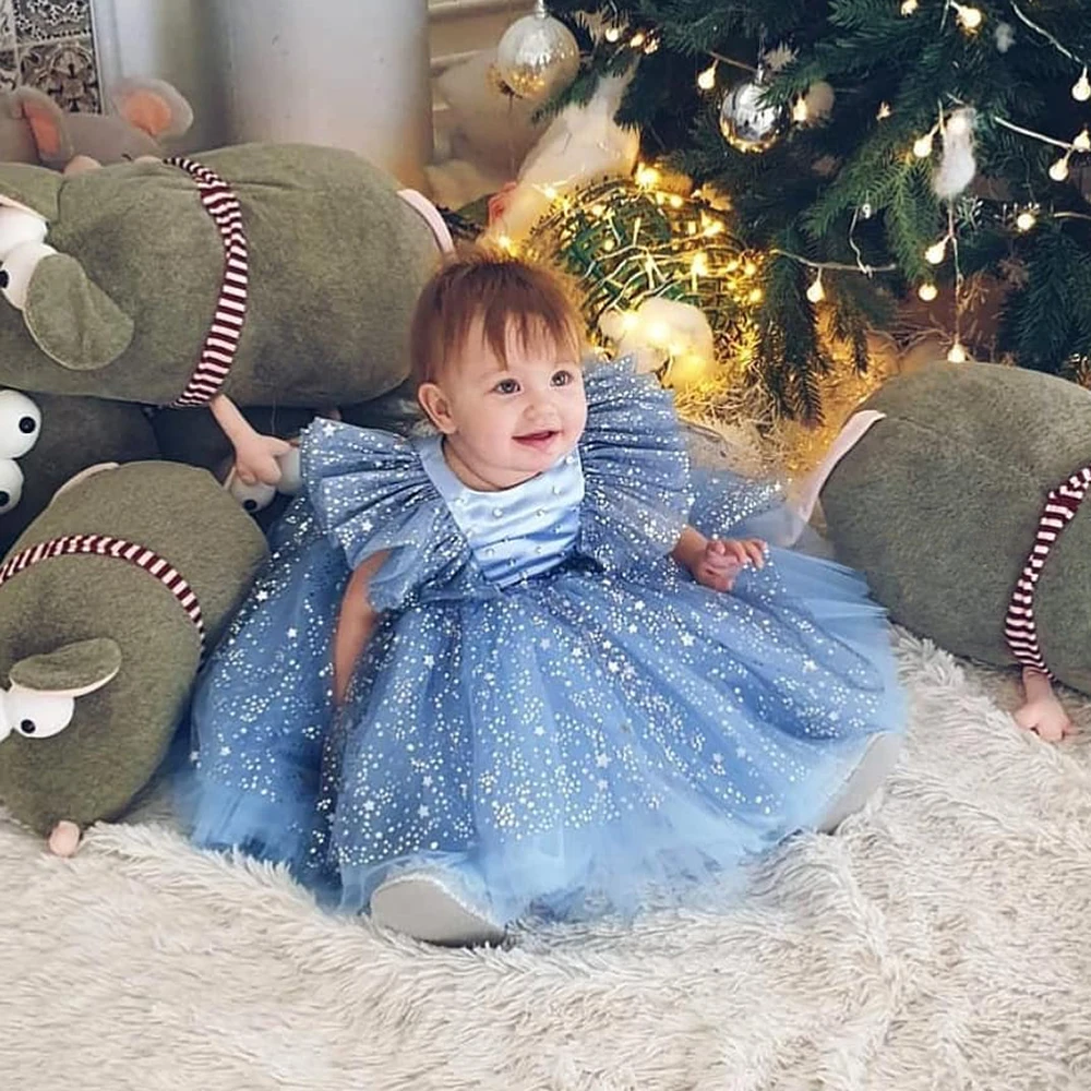 Детское платье на 1-й день рождения с блестками для девочек, пушист...