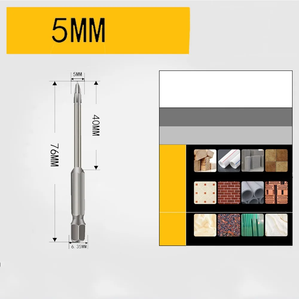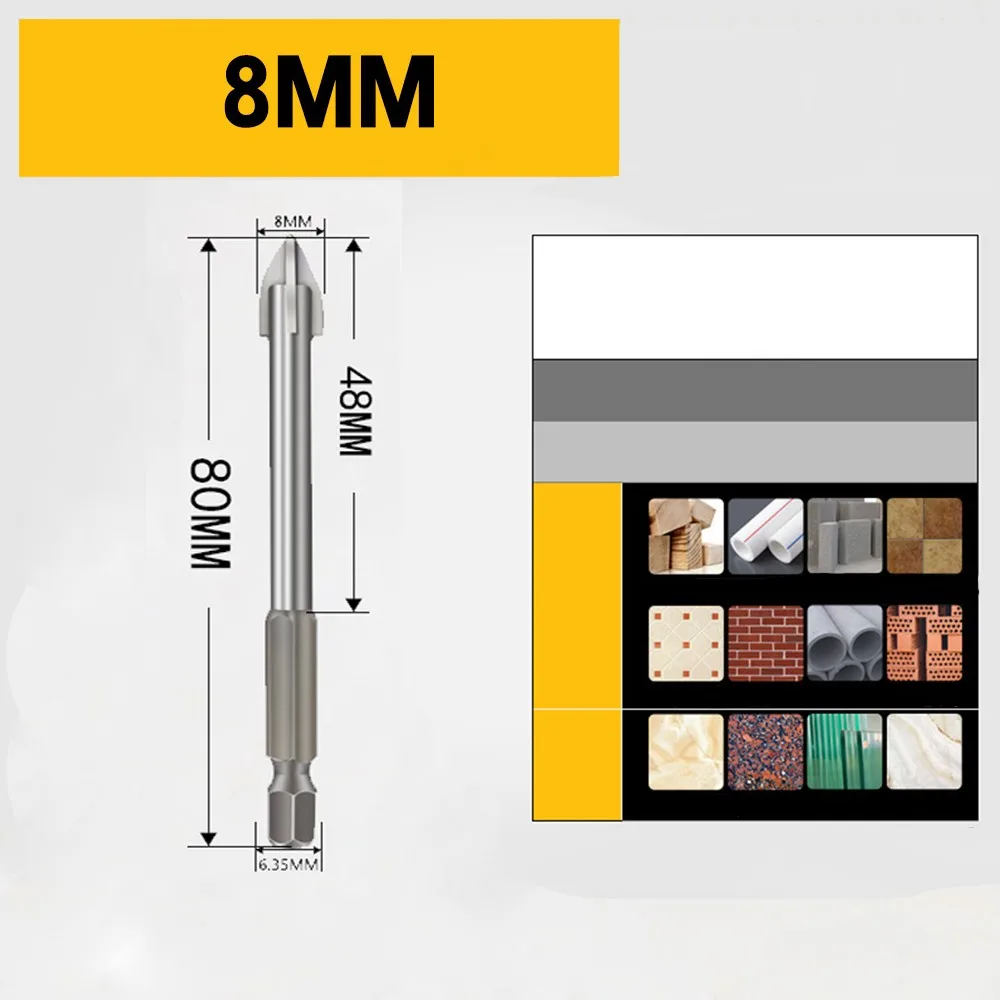 Крестовые шестигранные насадки для плитки, стеклянные, керамические, бетонные отверстия, сплав, Размеры 3456781012 мм