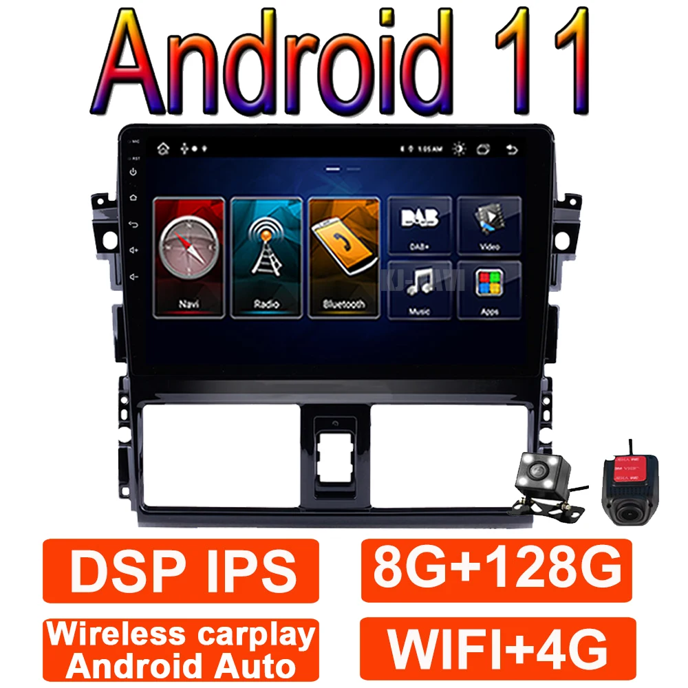 Автомобильный радиоприемник 8 + 128G Android 11 для Toyota YARIS VIOS 2014 2015 2016 мультимедийный GPS-навигатор беспроводной Carplay Android Авто DSP IPS