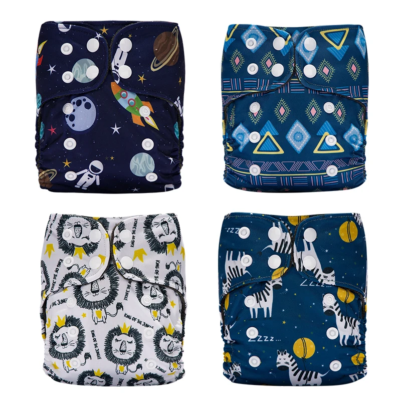 Подгузники для новорожденных 4 шт.компл. многоразовые и моющиеся тканевые подгузники с карманами подгузники с мультяшным принтом для мальчиков и девочек Прямая поставка