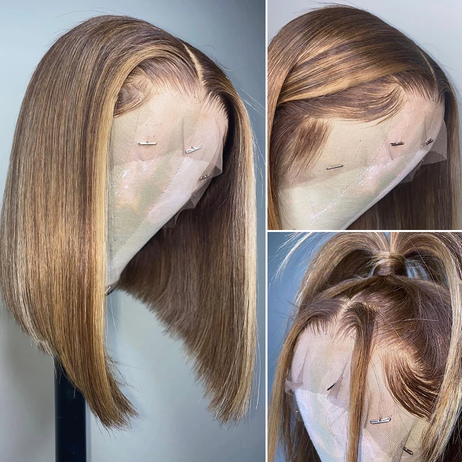 Выделите парик бразильские кости прямые короткие Боб мед блонд Круж...