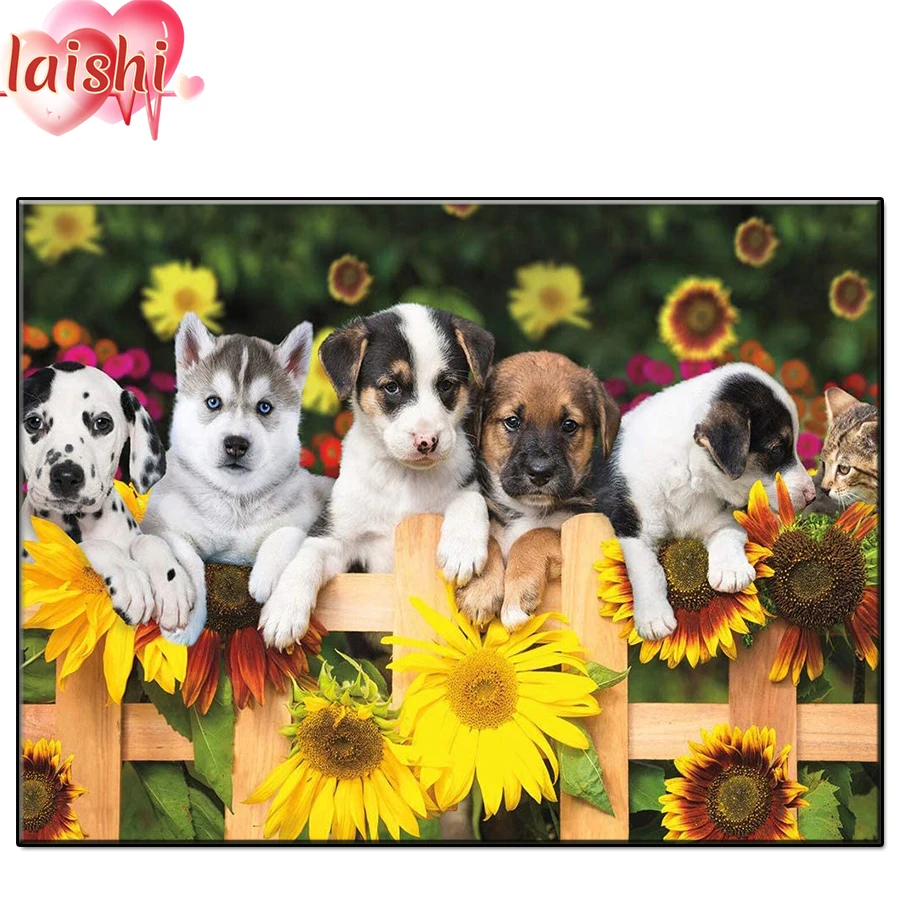 Подсолнухи своими руками, садовый пейзаж, различные собаки, круглый набор для алмазной живописи, алмазная Вышивка Животных, украшение для дома, Новогодний подарок