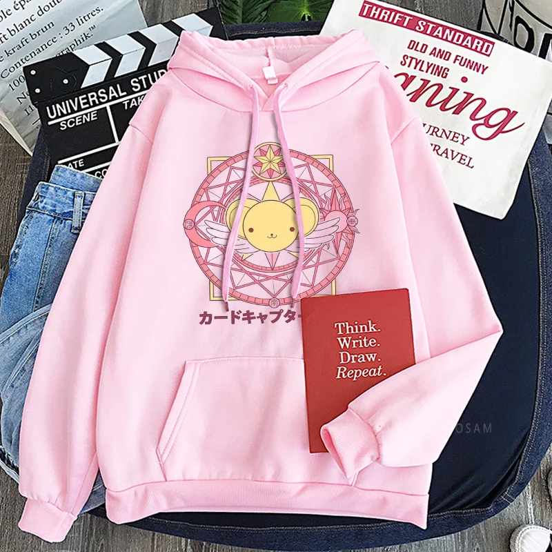 Женская толстовка с капюшоном в виде карточки сакуры, милые Мультяшные толстовки с капюшоном в стиле аниме, кавайная Женская одежда в стиле Харадзюку