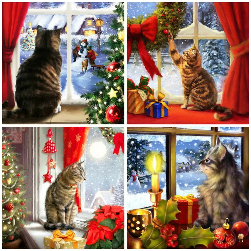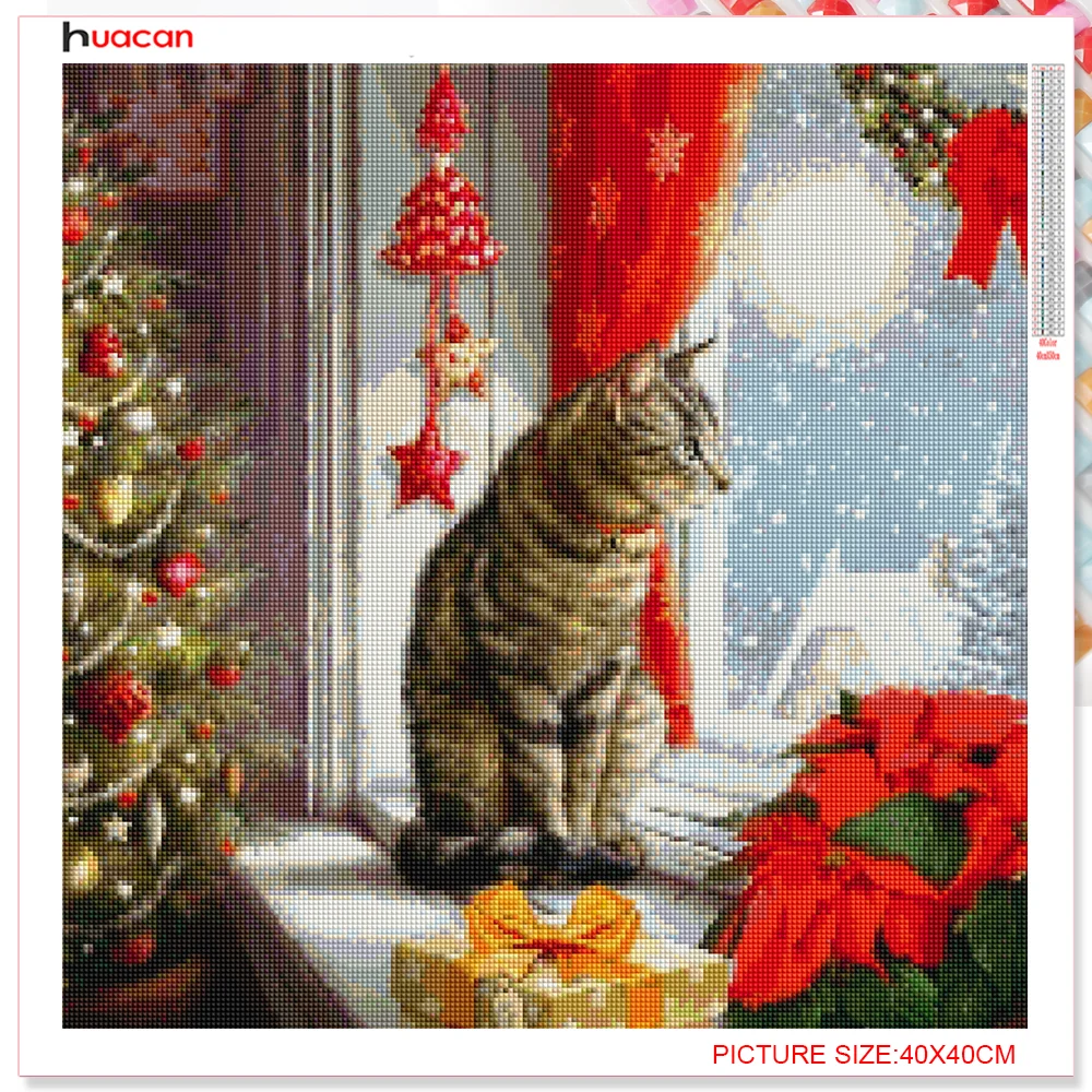 Алмазная вышивка Huacan 5D Набор для рисования кошек и окон Алмазная мозаика с животными рождественские вышивки картины для дома