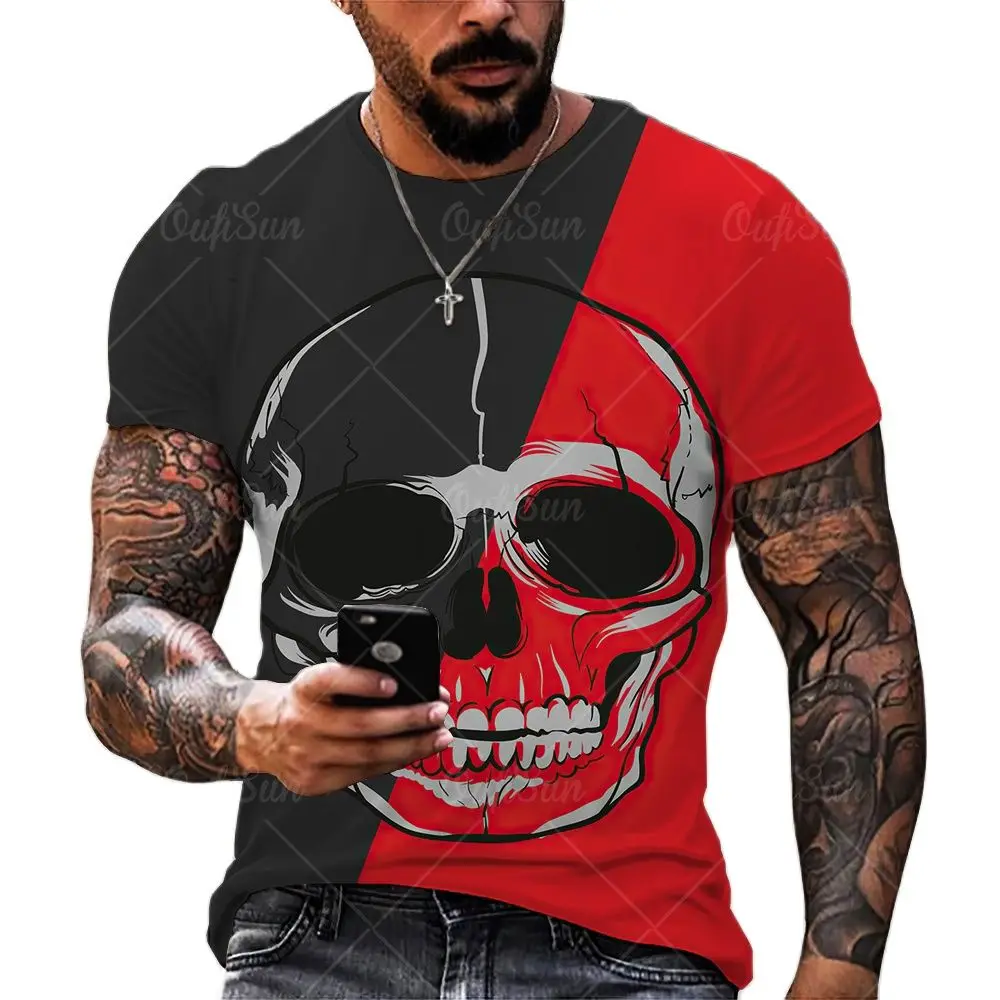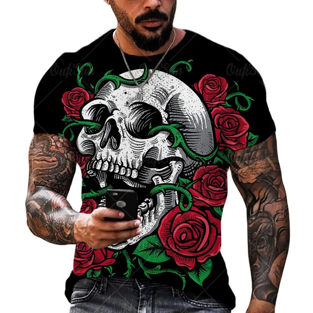 Футболка мужская с 3D-принтом черепа, модная уличная одежда в стиле унисекс, удобная рубашка с круглым вырезом и коротким рукавом, большие размеры, лето