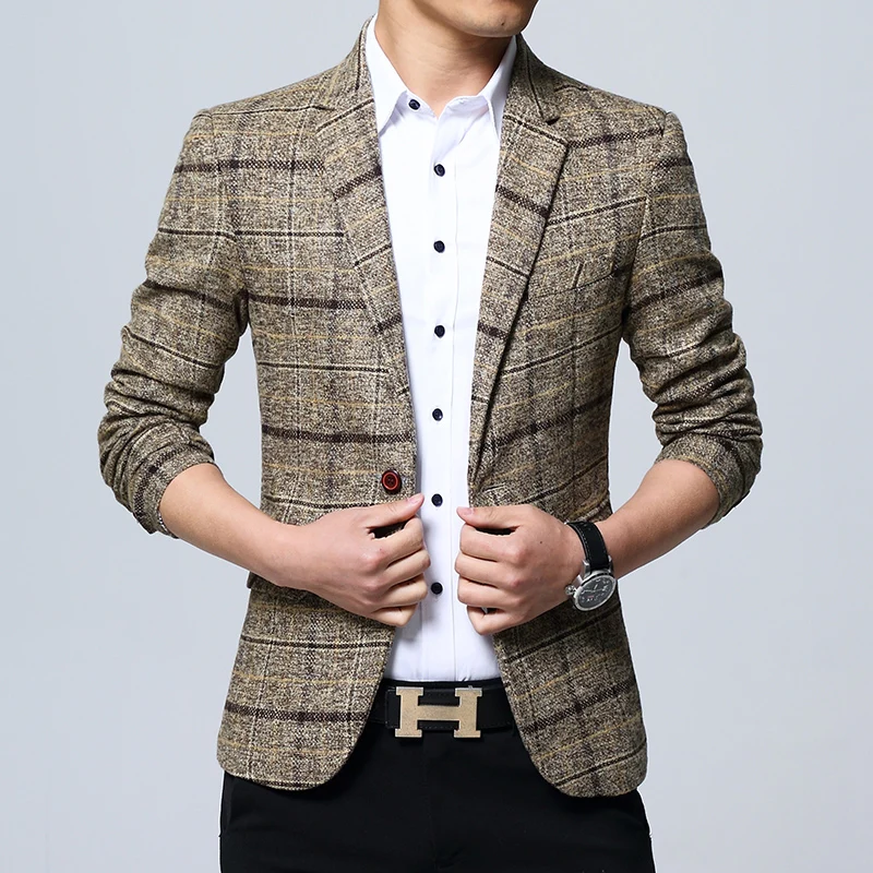 Новинка, мужские блейзеры, приталенные костюмы для мужчин, деловой официальный Блейзер, мужской свадебный костюм, куртки, мужской модный клетчатый Мужской Блейзер, куртка