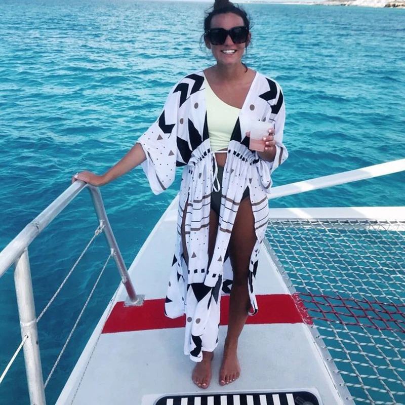 2022 накидки-кимоно, туника для пляжа, кафтан, купальник, накидка, ремешок с принтом, пляжная одежда, Пляжное парео, летнее пляжное платье